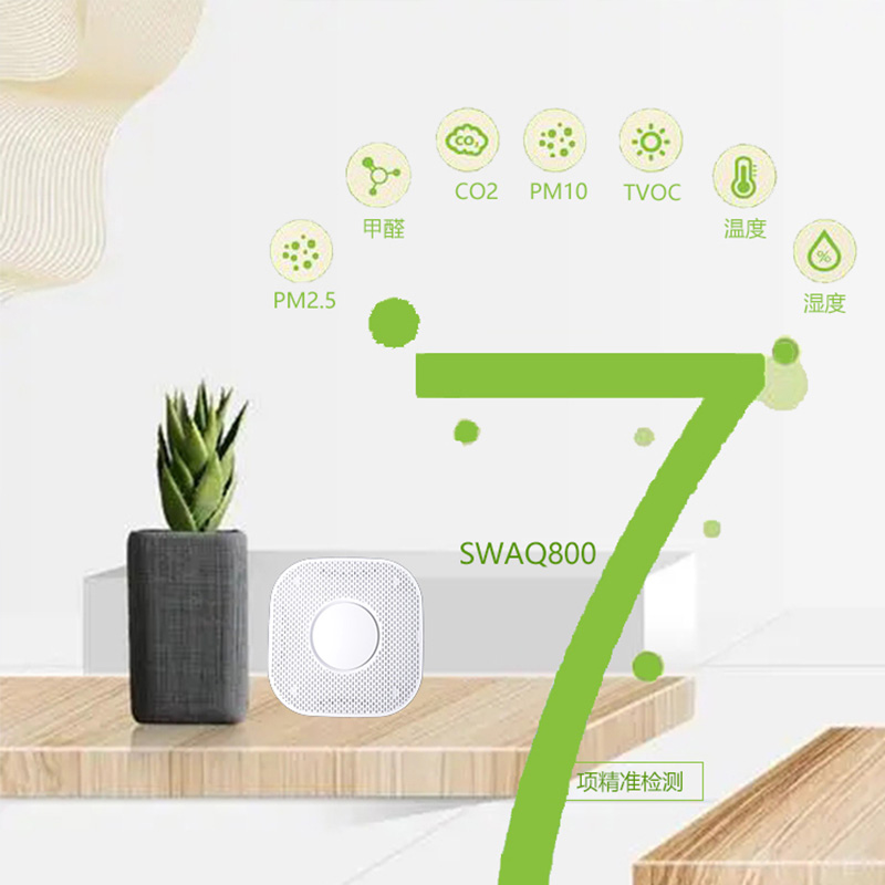| 检测类别 | 温度、湿度、PM2.5、PM10 、甲醛(HCHO) 、TVOC、CO₂ |